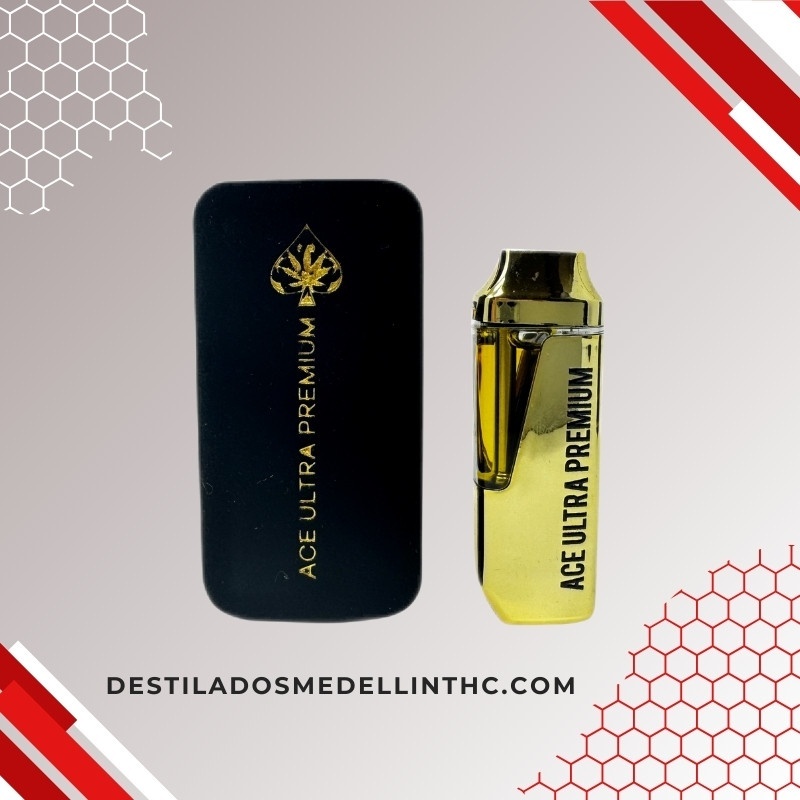El dispositivo Ace Ultra Premium 2ml es un desechable THC de alta gama que contiene 2 gramos (2000mg) de destilado concentrado de THC tipo liquid diamonds. Fabricado con acabado dorado metálico premium, se diferencia visualmente de otros dispositivos por su estética elegante que recuerda a una pluma de lujo.